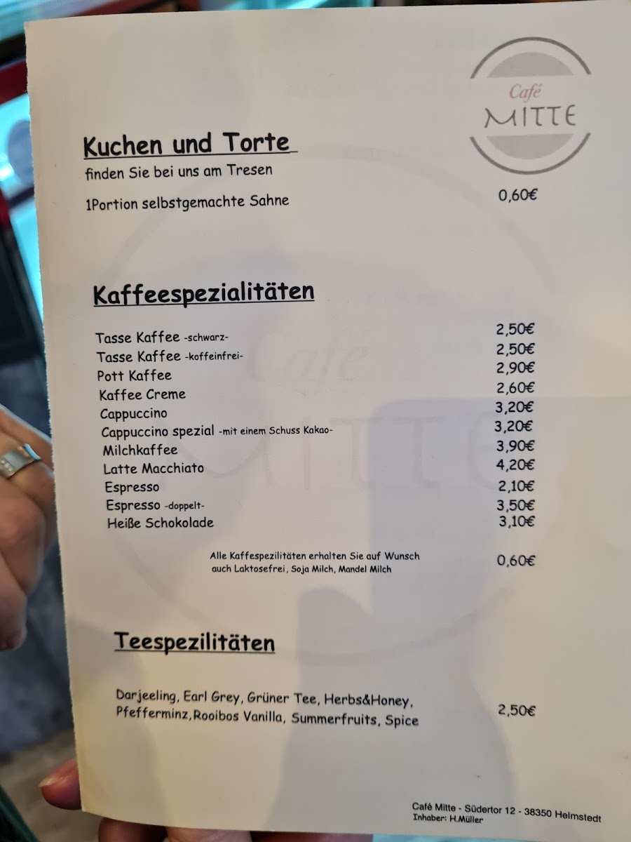 Make the small detour to Cafe Mitte Helmstedt for a delicious and affordable dining experience that will leave you wanting to return!